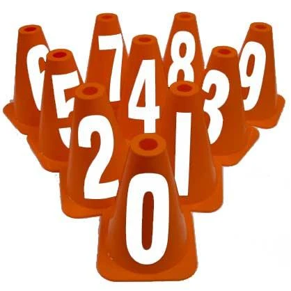 Set of 10 cones with 150mm vinyl numbers. Each set includes numbers 0 to 9.