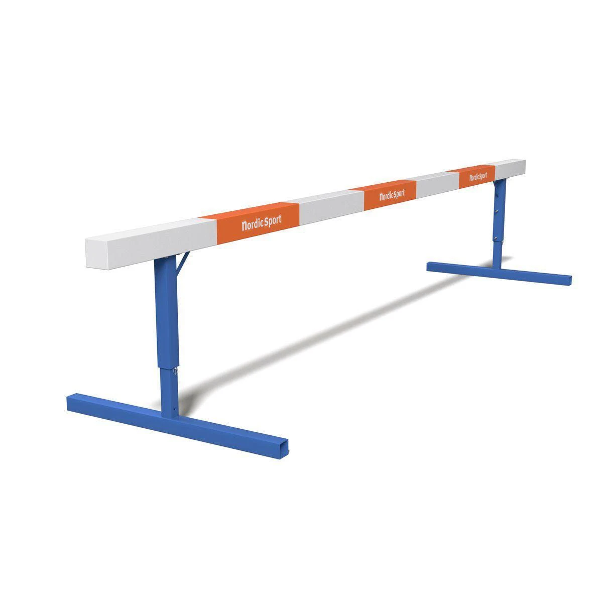 Strong laminated wood hurdle crossbar made of pinewood from northern Sweden, this the most stable steeplechase hurdle on the market. Under structure of powder coated steel. Overall length 5.0 metres. Height adjustable for Men (91.4cm) and Women (76.2cm). WA certified no E-99-0009.