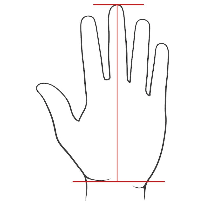 Strong durable leather hammer glove. Extra leather lining at inside of fingers. Guide is an indication of size only and is based on measurement from wrist to tip of index finger as shown.
