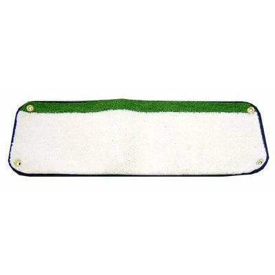 Two colour synthetic grass take off mat measures 900mm x 300mm. Can be pegged to the ground through eyelets.