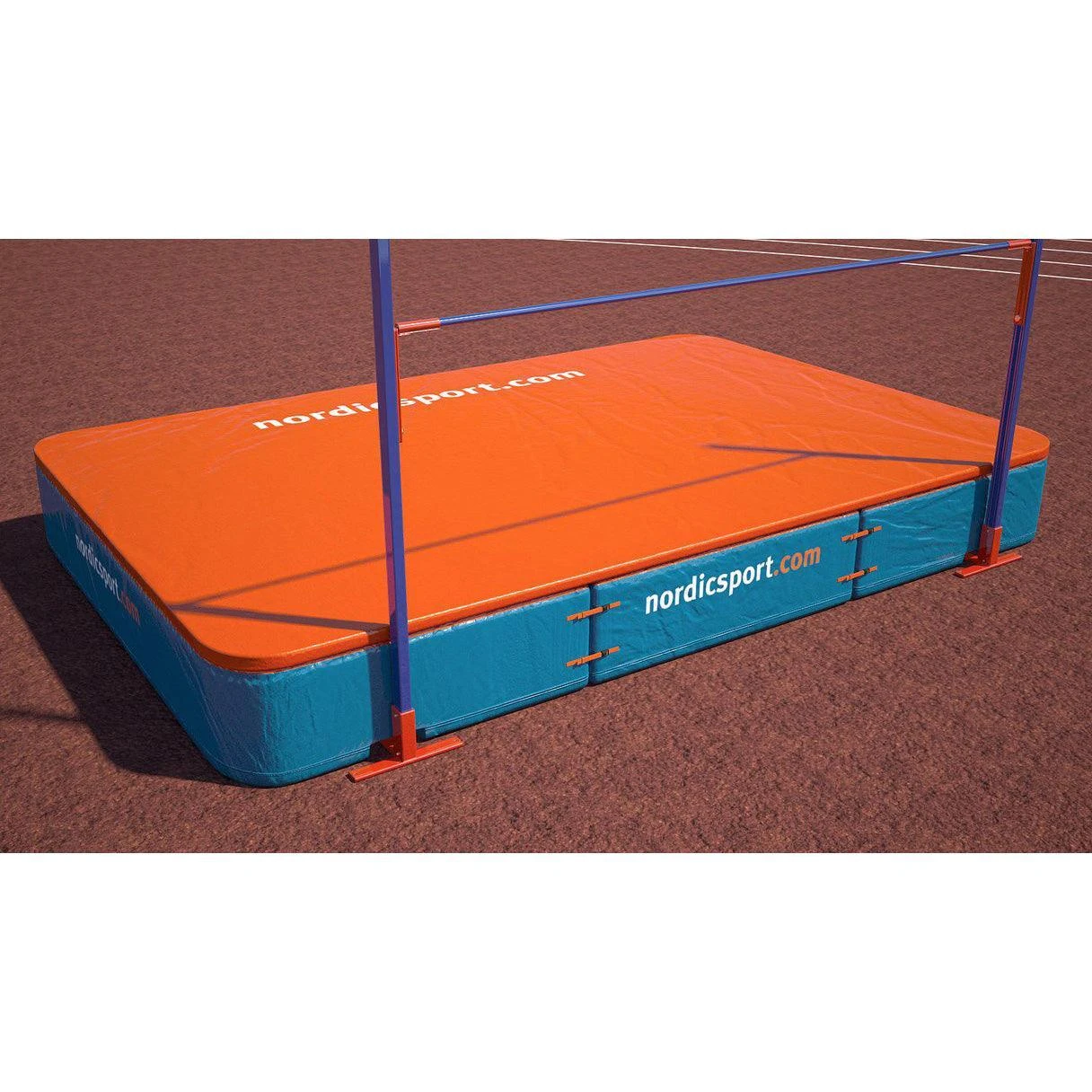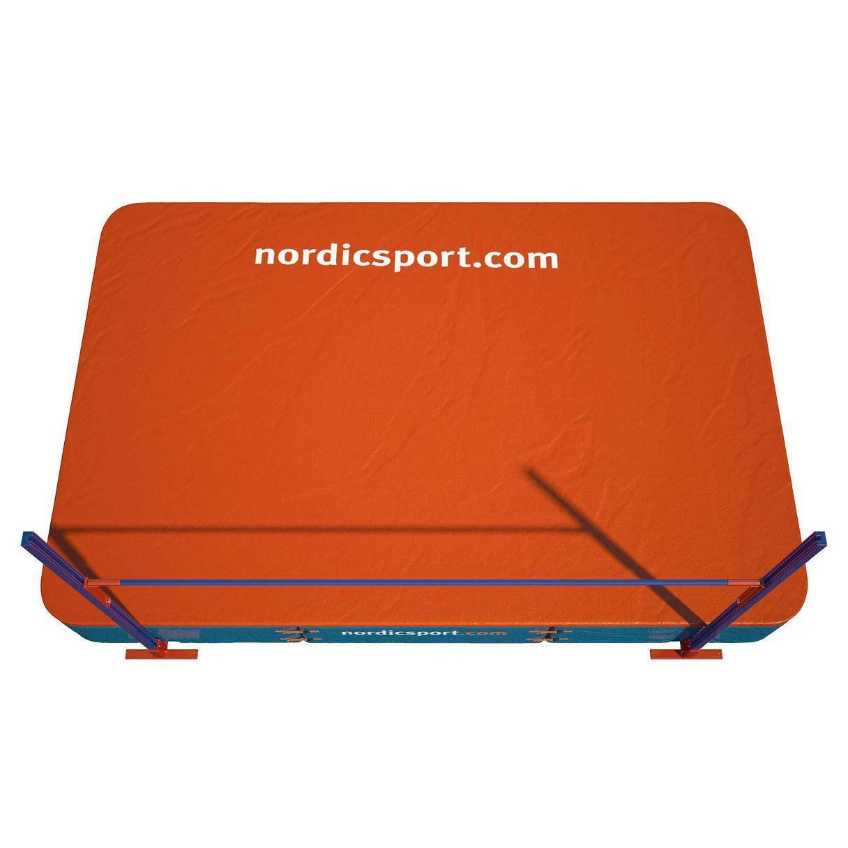 Competition landing area consists of 3 base units with separate covers on all sections. Total size 6000 x 4000 x 700mm. The strong cover is made from armoured polyester net structure and the pit is filled with tunnel construction foam for safety and comfort. Delivered with one double sided wear pad resistant to spike tears. WA certified: E-99-0192.