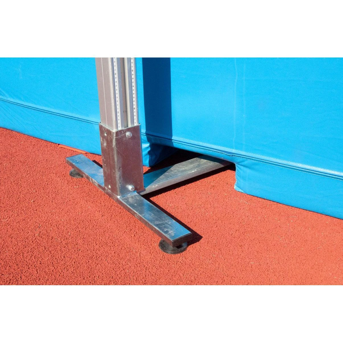 High jump landing pit to WA specifications. Consists of 3 base units each 3 metres x 1.67 metres, top wear pad and rain cover. Foam is of tunnel construction in the three main units, wear pad made of spike resistant polyester mesh fabric. Units lock together with fitted mountings and includes welded handles. Total pit measures 5 metres x 3 metres x .65 metres. Weather cover is included.
