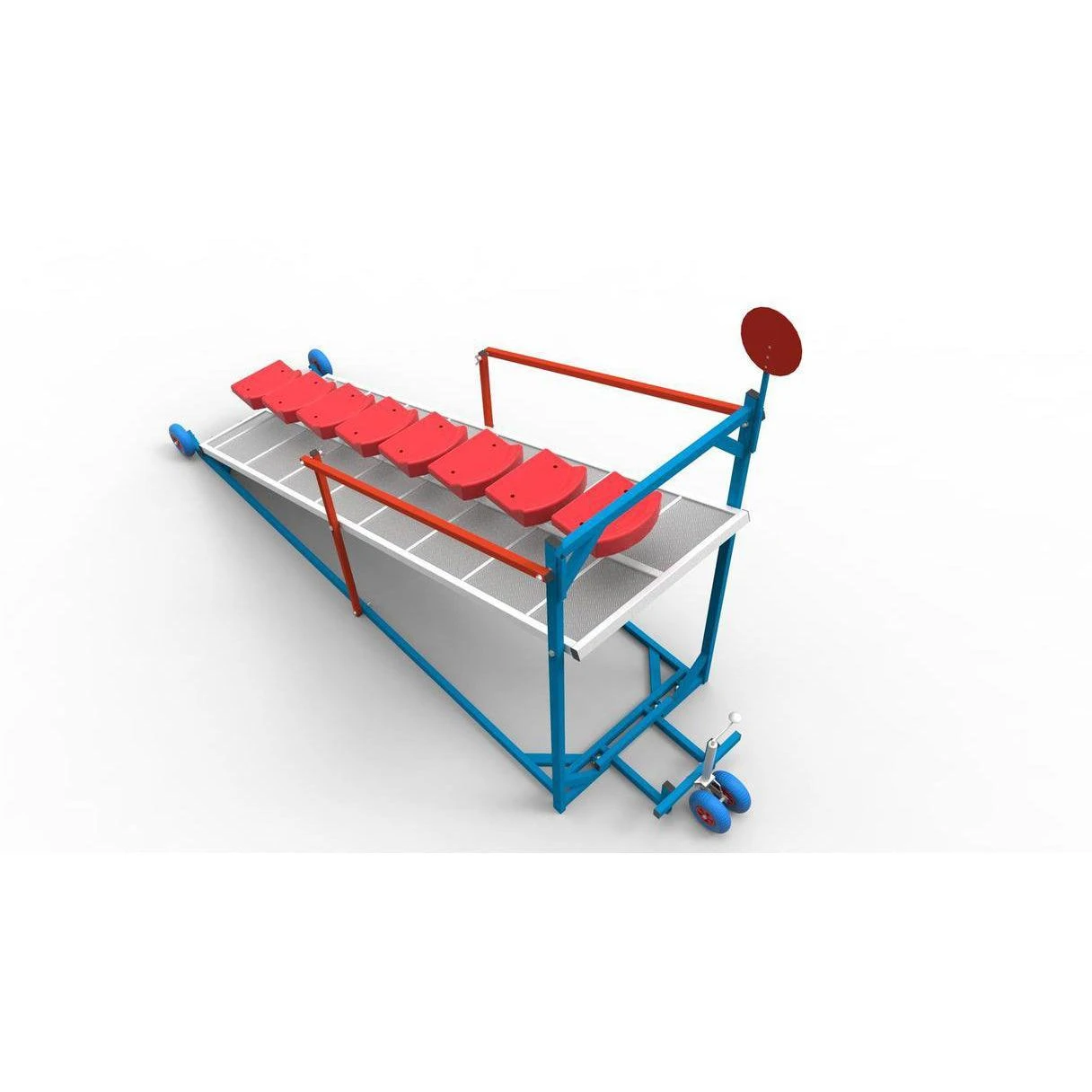 Timers stand made of aluminium with 8 seats. Can easily be folded to use minimum space when storing. Fitted with wheels for easy transportation. Complete with detachable signal board.